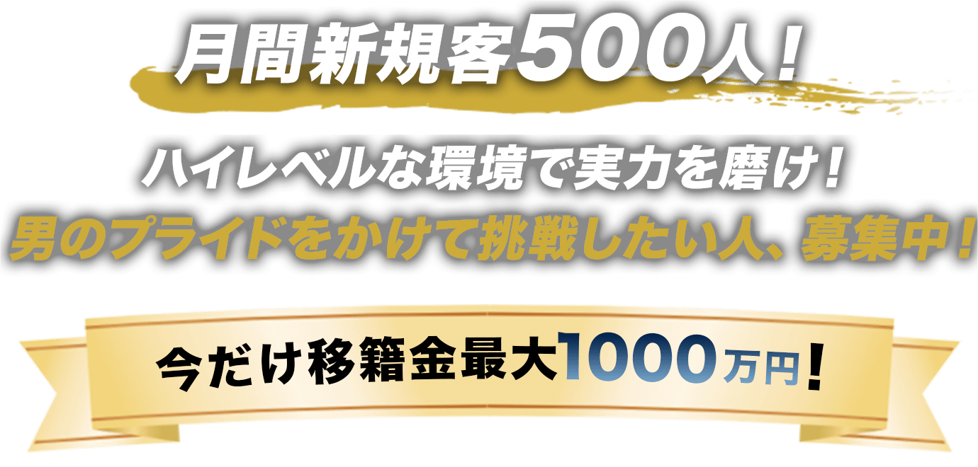 | 経験者・有名人・現役ホストの方への特別待遇 | ・入店祝い金最大100万円 ・移籍金最大1000万円 |